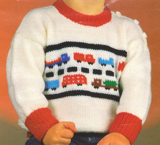 Vintage Knitting Pattern Toddler Boys Knit Vehicles Pullover Sweater Cars Trucks Traffic PDF Instant Digital Download 18m - 4 yrs DK 8 Ply
