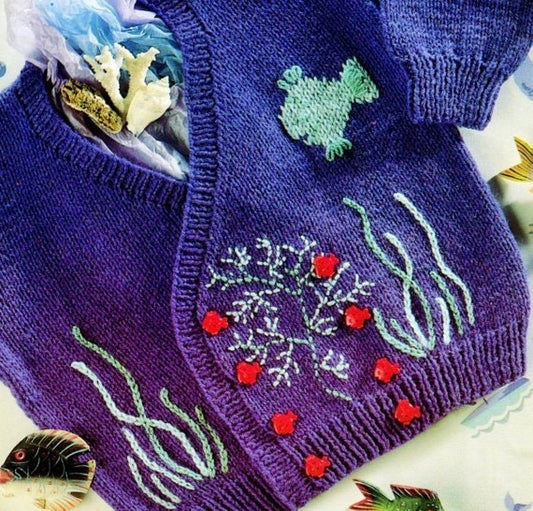 Vintage Knitting Pattern Toddler Boys Fish Sealife Cardigan Sweater PDF Instant Digital Download 18m - 6 Years Aquarium Jumper 5 Ply