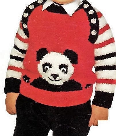 Vintage Knitting Pattern Toddler Childs Panda Bear Motif Sweater PDF Instant Digital Download Zoo Animal Pullover 2-6 yrs 10 Ply