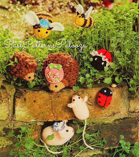 Vintage Knitting Pattern Tiny Garden Meadow Creatures Mamas and Babies Soft Amigurumi Toys PDF Instant Digital Download Mice Bees Hedgehog