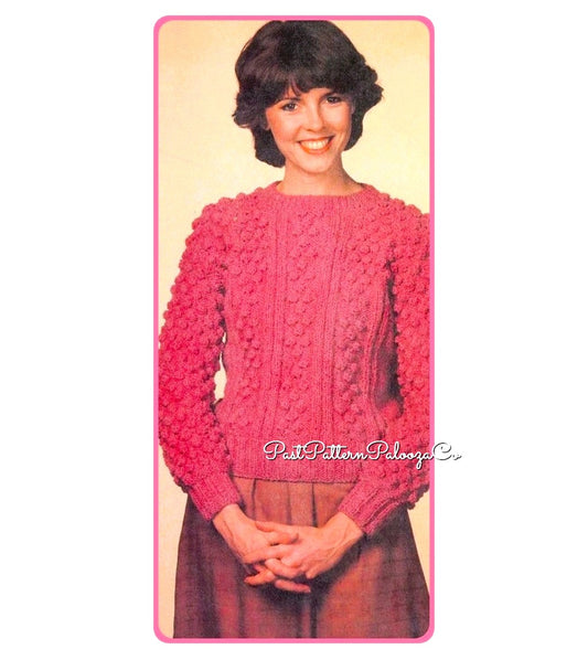 Vintage Knitting Pattern Womens Bobble Knot Stitch Sweater PDF Instant Digital Download Retro Pretty Pullover Long Sleeve Jumper 10 Ply