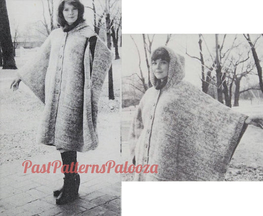 Vintage Knitting Pattern Womens Boho Hooded Poncho Coat PDF Instant Digital Download Retro Rectangle Sweater Cape 10 Ply One Size