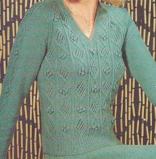 Vintage Knitting Pattern Womens Bobble Diamonds Pullover V Neck Sweater and Skirt Set PDF Instant Digital Download DK 8 Ply