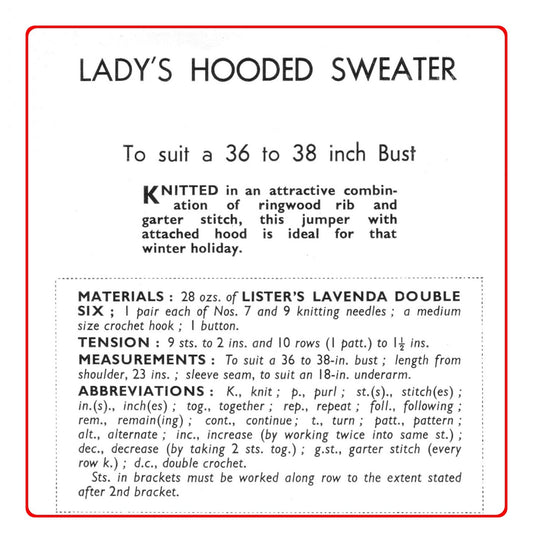 Vintage Knitting Pattern Womens Hoodie Sweater MCM Retro Jumper PDF Instant Digital Download Pretty Hooded Pullover 10 Ply