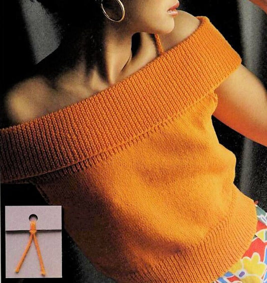 Vintage Knitting Pattern Womens Knit Fiesta Top Off Shoulder Sleeveless Sweater PDF Instant Digital Download 4 Ply