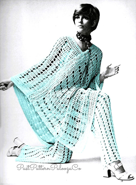 Vintage Crochet Pattern Womens Lacy Poncho and Pants Outfit Set PDF Instant Digital Download 1970s Bohemian Boho Hippie Chic 12 Ply