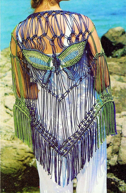 Vintage Macrame Pattern Womens Butterfly Shawl Wrap Fringed Beachcover PDF Instant Digital Download Hippie Boho Chic