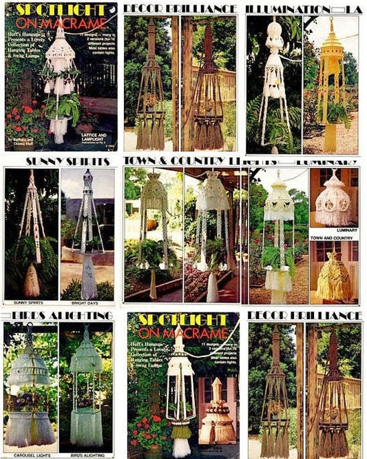 Vintage Spotlight On Macrame Patterns eBook Retro 1980 Printable PDF Instant Digital Download Hanging Lighted Tables Swag Lamps 16 Projects