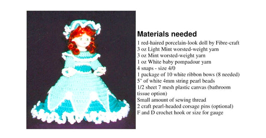 Vintage Crochet Pattern 11.5" Bed Doll or Tissue Roll Cover PDF Instant Digital Download Outfit Dress and Hat 10 Ply