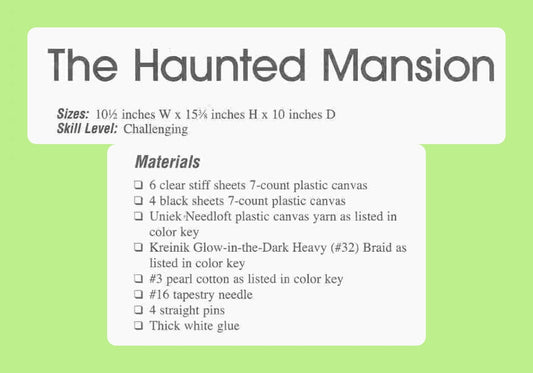 Vintage Plastic Canvas Pattern 15" Green Halloween Haunted House Mansion PDF Instant Digital Download Spooky Holiday Decor