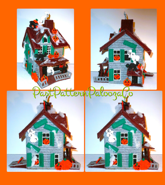 Vintage Plastic Canvas Pattern 14" Halloween Haunted House Mansion Decor Display Piece Treat or Cookie Jar PDF Instant Digital Download