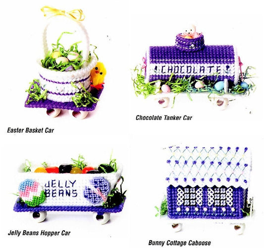 Vintage Plastic Canvas Pattern Easter Bunny Express Train PDF Instant Digital Download Candy Holder Spring Holiday Decor