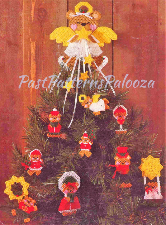 Vintage Plastic Canvas Pattern Christmas Teddy Bear Ornaments Tissue Cover Caddy Angel Bear Tree Topper PDF Instant Digital Download