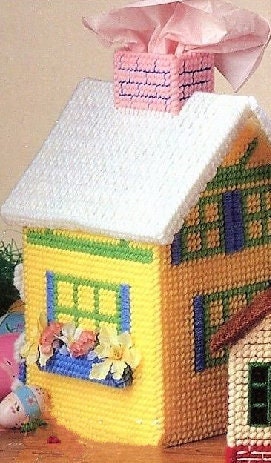 Vintage Plastic Canvas Pattern Easter Bunny House Tissue Box Cover Tissue Topper PDF Instant Digital Download 7 Count
