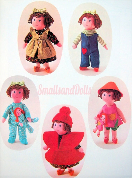 Vintage Sewing Pattern 14" Amy Doll and Her Dolly Soft Sculpture Toy Dolls Full Wardrobe PDF Instant Digital Download