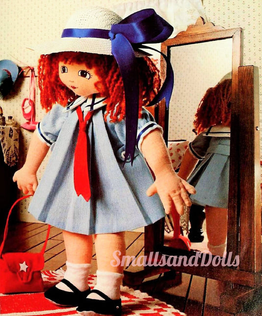 Vintage Sewing Pattern 13" Pretty School Girl Rag Doll Soft Sculpture Toy PDF Instant Digital Download Soft Fabric Toy Doll Hat Purse