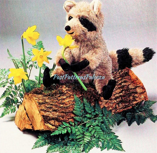 Vintage Sewing Pattern 16" Plush Raccoon and Brown Bear Faux Fur Fabric Toys PDF Instant Digital Download Sewn Woodland Forest Friends Dolls