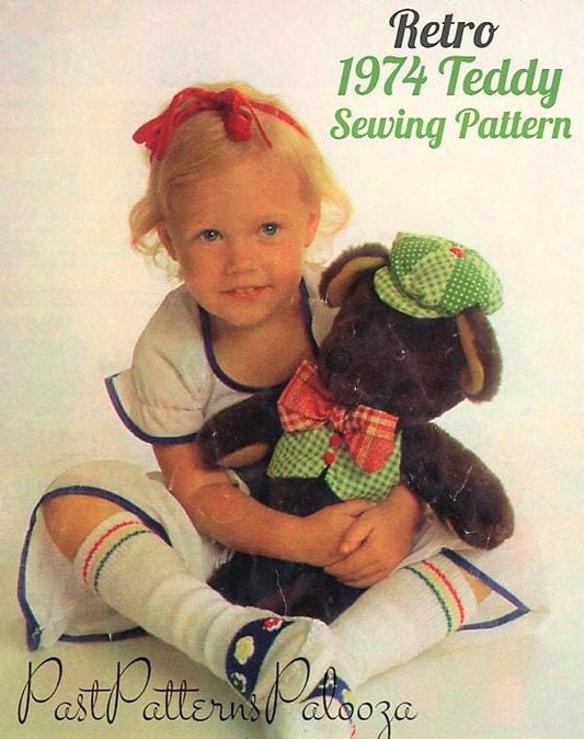Vintage Sewing Pattern 16" Plush Teddy Bear with Hat Vest & Bowtie Soft Toy Doll PDF Instant Digital Download Sewn Faux Fur