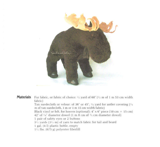 Vintage Sewing Pattern 16" Mighty Moose Faux Fur Fabric Soft Sculpture Plush Toy PDF Instant Digital Download Stuffed Canadian Forest Animal