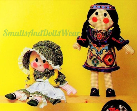 Vintage Sewing Pattern 20" Cute Gingham Prairie Girls and Indian Girl Soft Sculpture Dolls Fabric Car PDF Instant Digital Download Toys
