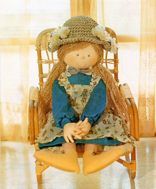 Vintage Sewing Pattern 20" Cute Country Prairie Girl Soft Sculpture Toy Doll PDF Instant Digital Download Cotton Fabrics Yarn Hair