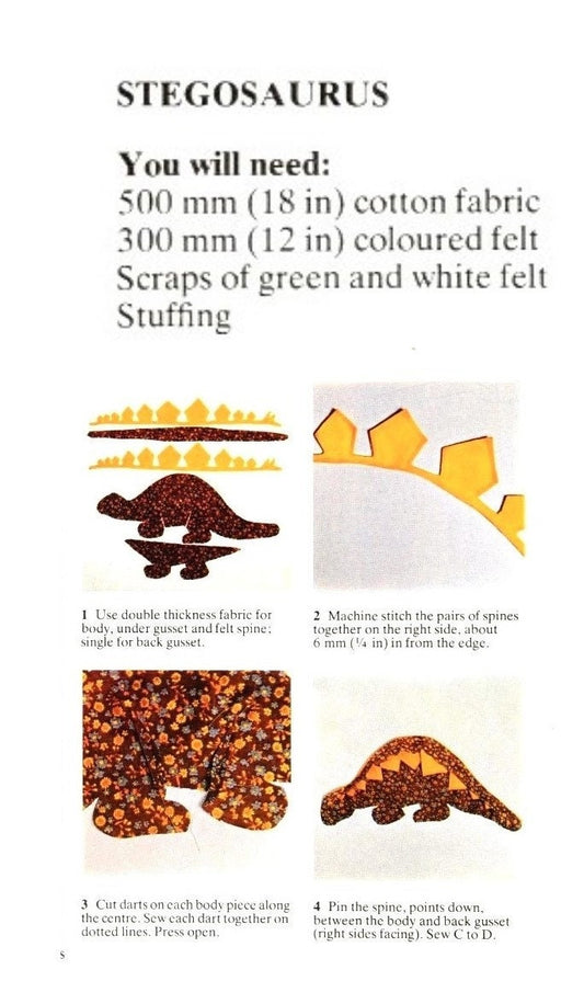 Vintage Sewing Pattern 20" Calico Fabric Stegosaurus Soft Sculpture Toy Dinosaur PDF Instant Digital Download Dino Stuffed Animal