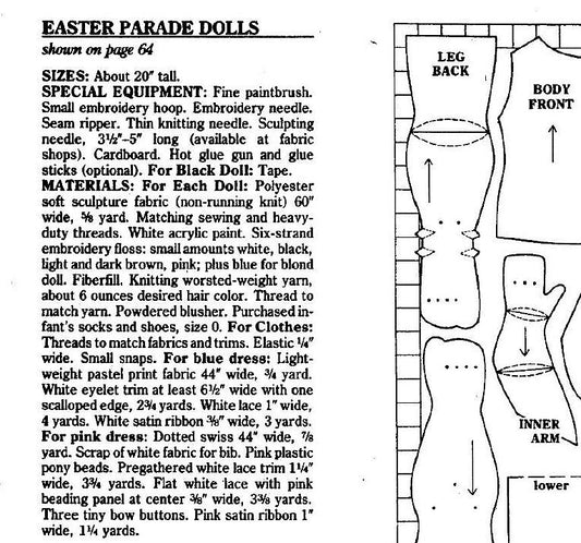Vintage Sewing Pattern 20" Sunday Best Dressed Dolls Pretty Soft Sculpture Girls PDF Instant Digital Download Easter Dress Plush Soft Toys