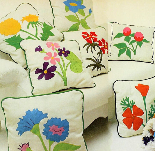 Vintage Sewing Pattern 20" Wildflower Applique Pillows 8 Beautiful Floral Designs PDF Instant Digital Download Retro 1970s