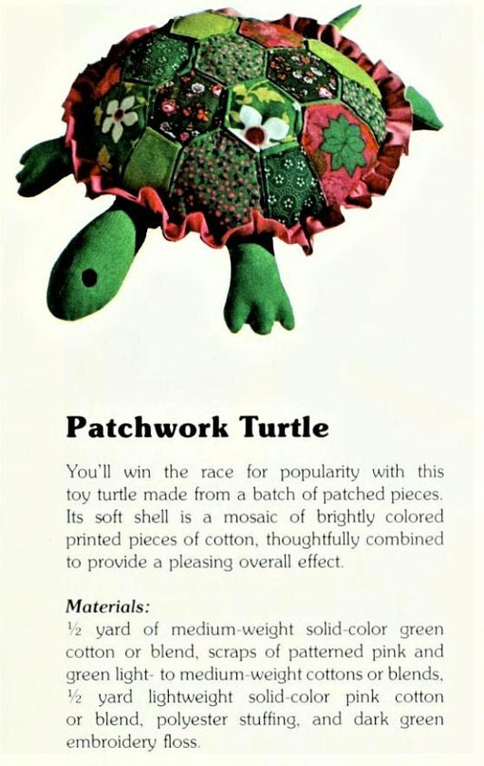 Vintage Sewing Pattern 20" Mosaic Patchwork Fabric Turtle Tortoise Soft Sculpture Doll PDF Instant Digital Download Stuffed Soft Toy