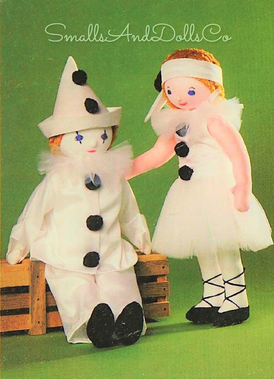 Vintage Sewing Pattern 21" Clown Mime Soft Sculpture Dolls Boy and Girl Pierrot Pierrette PDF Instant Digital Download