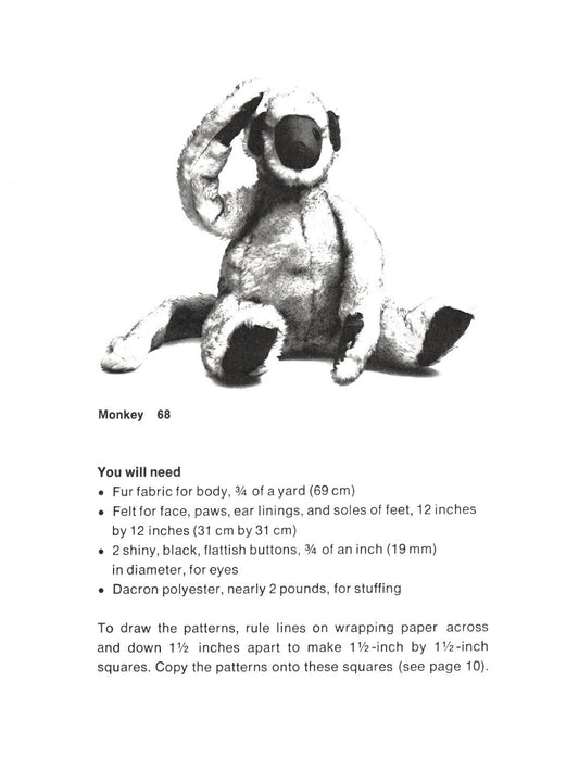 Vintage Sewing Pattern 20" Sitting Monkey Doll Soft Sculpture Plush Toy PDF Instant Digital Download Faux Fur Fabric Jungle Zoo Animal