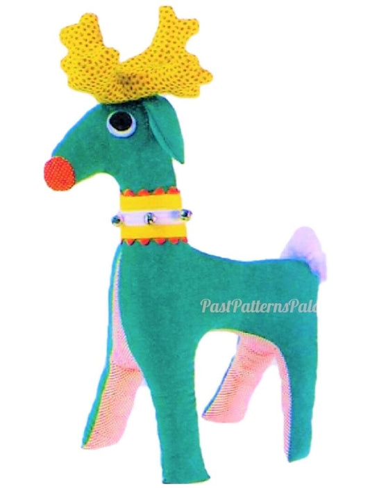 Vintage Christmas Sewing Pattern 25" Corduroy Fabric Reindeer Stuffed Soft Sculpture Toy Doll PDF Instant Digital Download