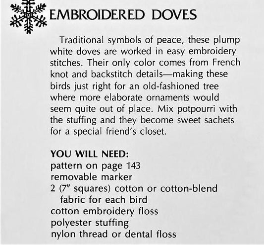Vintage Christmas Sewing Pattern 6" Embroidered Doves Bird Ornaments Cotton Fabric PDF Instant Digital Download