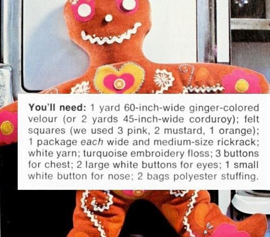 Vintage Christmas Sewing Pattern 31" Applique Gingerbread Man Velour Fabric Soft Sculpture Doll PDF Instant Digital Download