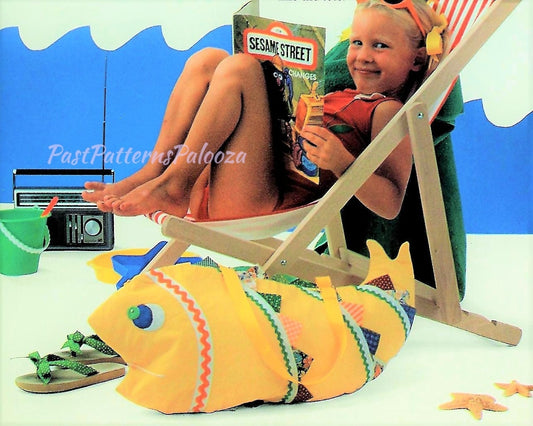 Vintage Sewing Pattern 32" Fun Fabric Fish Tote Bag Beach Swim Carry All Overnight Duffle Bag PDF Instant Digital Download