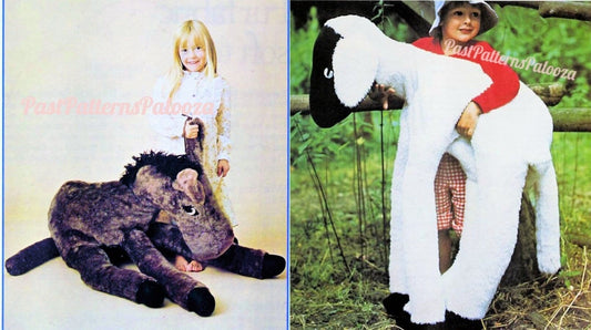 Vintage Sewing Pattern 36" Giant Lamb and Donkey Stuffed Animals Fur Fabric Soft Toys PDF Instant Digital Download Sewn Jumbo Farm Dolls