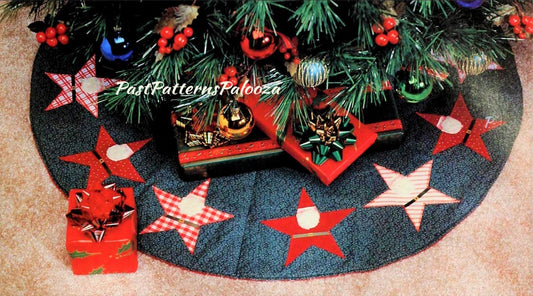 Vintage Sewing Pattern 36" Santa Stars Applique Christmas Tree Skirt PDF Instant Digital Download Sewn Folk Art Santa Claus Holiday Decor