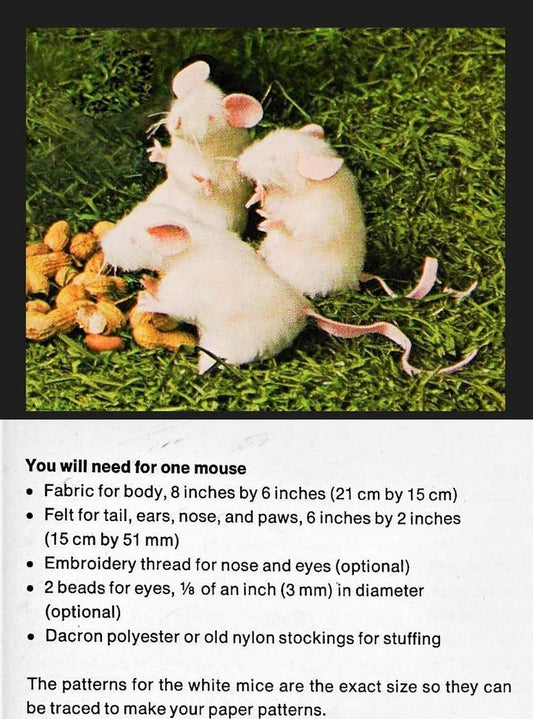 Vintage Sewing Pattern 4" Realistic Little Mouse Faux Fur Fabric Soft Sculpture Plush Toy PDF Instant Digital Download Stuffed Furry Mice