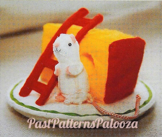 Vintage Sewing Pattern 4" Cute Felt Mouse and Cheese Pincushion PDF Instant Digital Download Retro Novelty Animal Pin Cushion