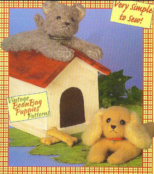 Vintage Sewing Pattern 9" Purebred Puppy Dog Beanies Plush Felt Fabric PDF Instant Digital Download Beanbag Puppies Sewn Soft Toys