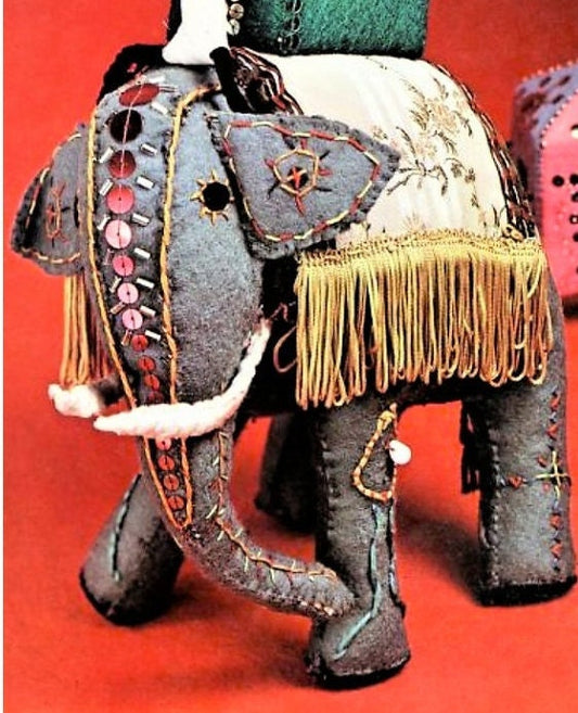 Vintage Sewing Pattern 9" Royal Elephant & Prince Felt Fabric Soft Sculpture Plush Figure PDF Instant Digital Download Retro Kitsch Toy