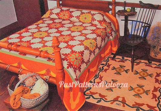 Vintage Sewing Pattern Autumn Oak Leaf Bed Quilt PDF Instant Digital Download Cotton Applique Block Quilting 92x109