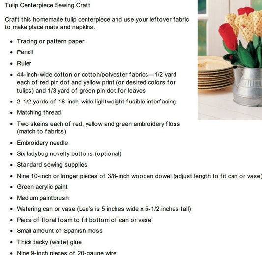 Vintage Sewing Pattern Calico Fabric Tulips Centerpiece PDF Instant Digital Download Plush Spring Flowers Bouquet Table Decor