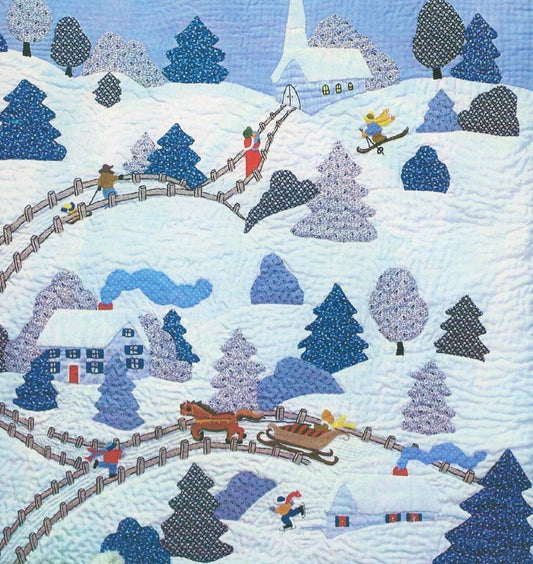 Vintage Sewing Pattern Calico Country Village Appliqué Quilt Blanket Victorian Winter Wonderland Scene PDF Instant Digital Download