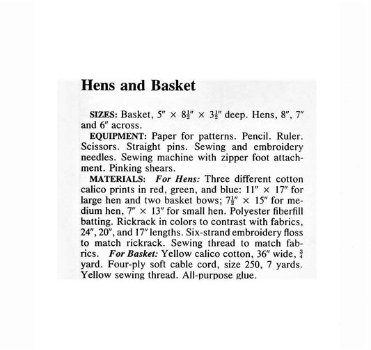 Vintage Sewing Pattern Calico Chicken Hen Potholders and Basket Set PDF Instant Digital Download Cotton Fabric Country Pot Holder Set