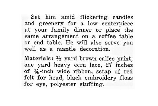 Vintage Sewing Pattern Calico and Lace Fabric Turkey Centerpiece PDF Instant Digital Download Plush Thanksgiving Holiday Table Decor