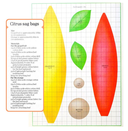 Vintage Sewing Pattern Childs Citrus Fruit Beanbag Chairs PDF Instant Digital Download Large Orange Grapefruit Bean Bag Cushions Retro 70s