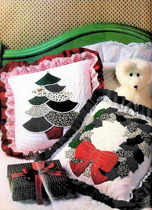 Vintage Sewing Pattern Christmas Calico Patchwork Pillows Trio PDF Instant Digital Download Quilted Tree Wreath Cushions 3 Designs