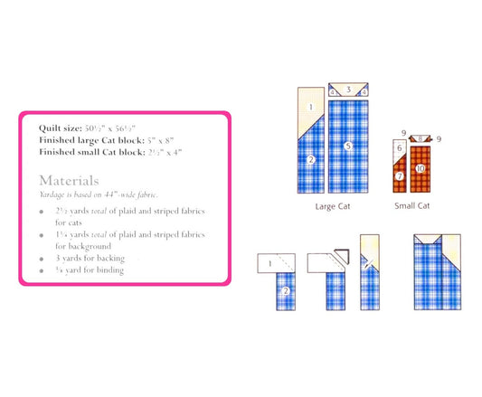 Vintage Sewing Pattern Colorful Cats Quilt PDF Instant Digital Download Cute Big & Small Kitty Silhouette Blocks Easy Beginners