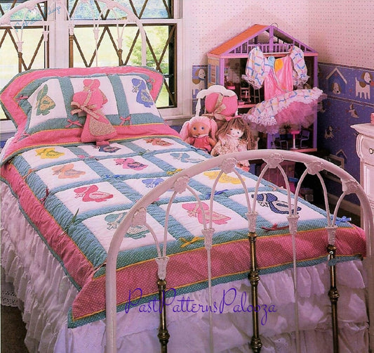 Vintage Sewing Pattern Classic Sunbonnet Sue Bed Quilt PDF Instant Digital Download Twin Bed Patchwork Applique Blocks Bedspread 52x73